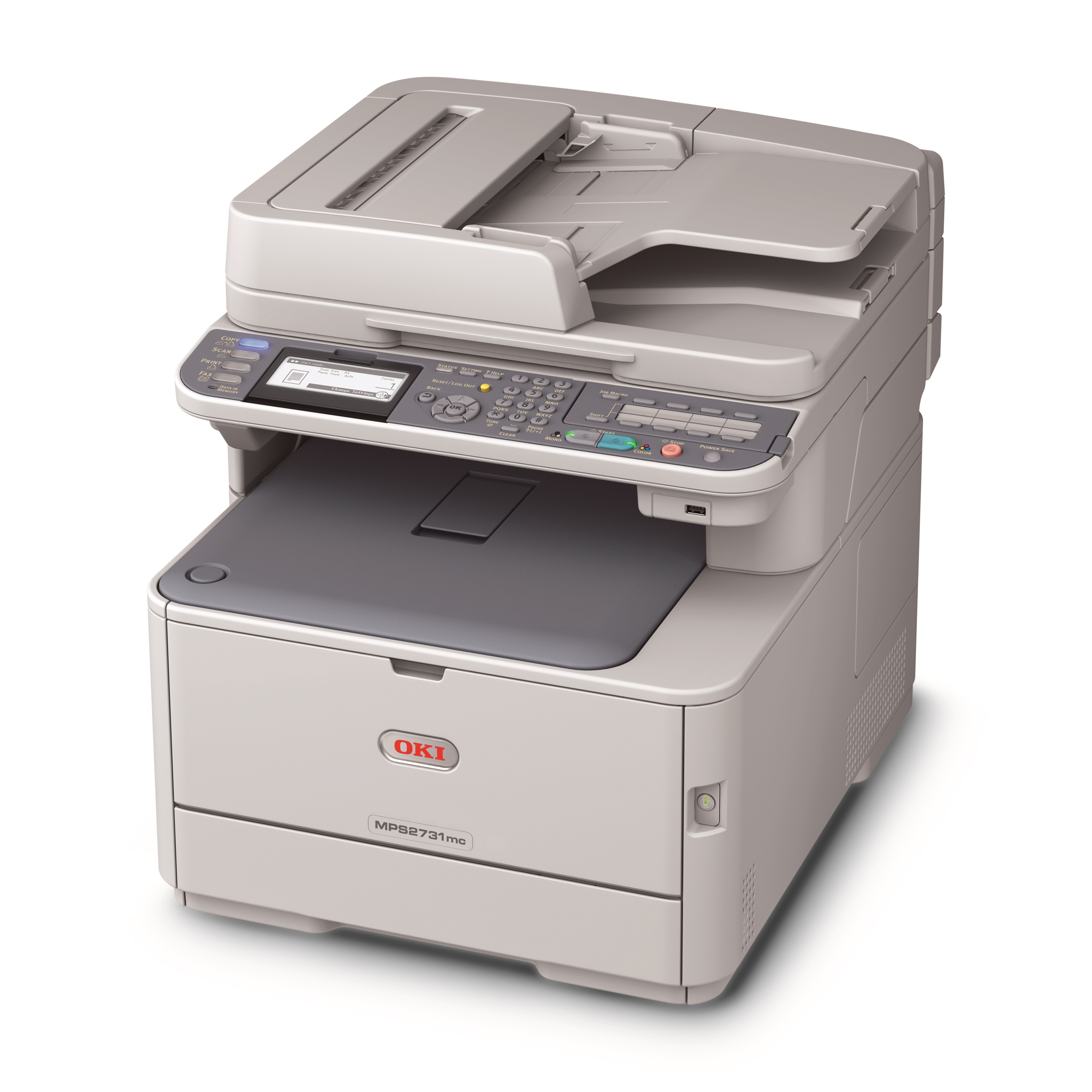 The compact OKI MPS2731mc is a multifunctional copier, printer, scanner, and fax machine. The wireless networking and mobile print app allows users to connect from virtually anywhere with today’s smart devices. Offices won’t be waiting around for prints with the OKI MPS2731mc output speed of 27 cpm in color and 31 cpm in monochrome.