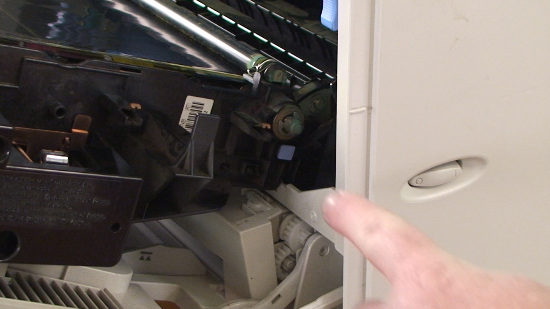 The front cover will open as you pull down the transfer unit.