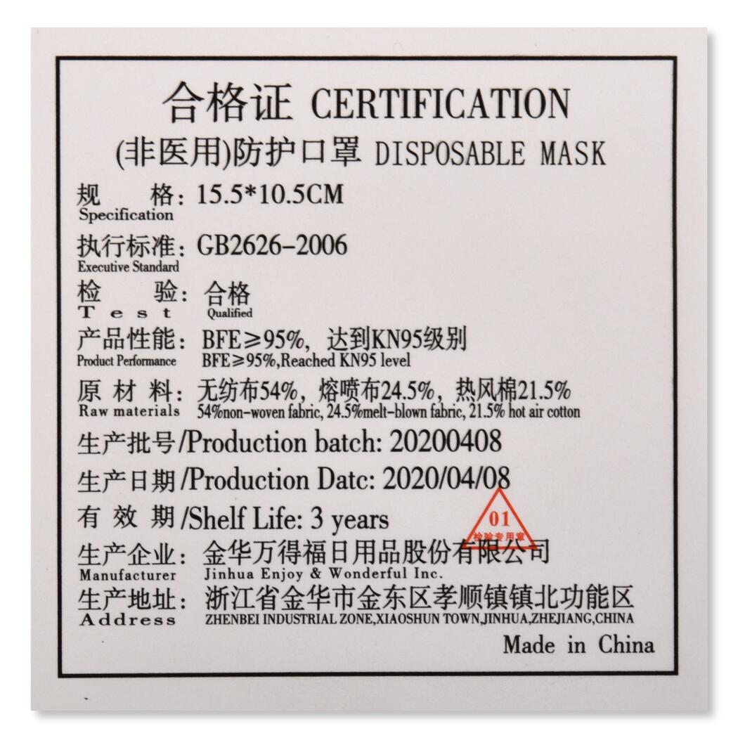KN95 Level Filter Mask - Bag of 5 Masks Specifications and Details: