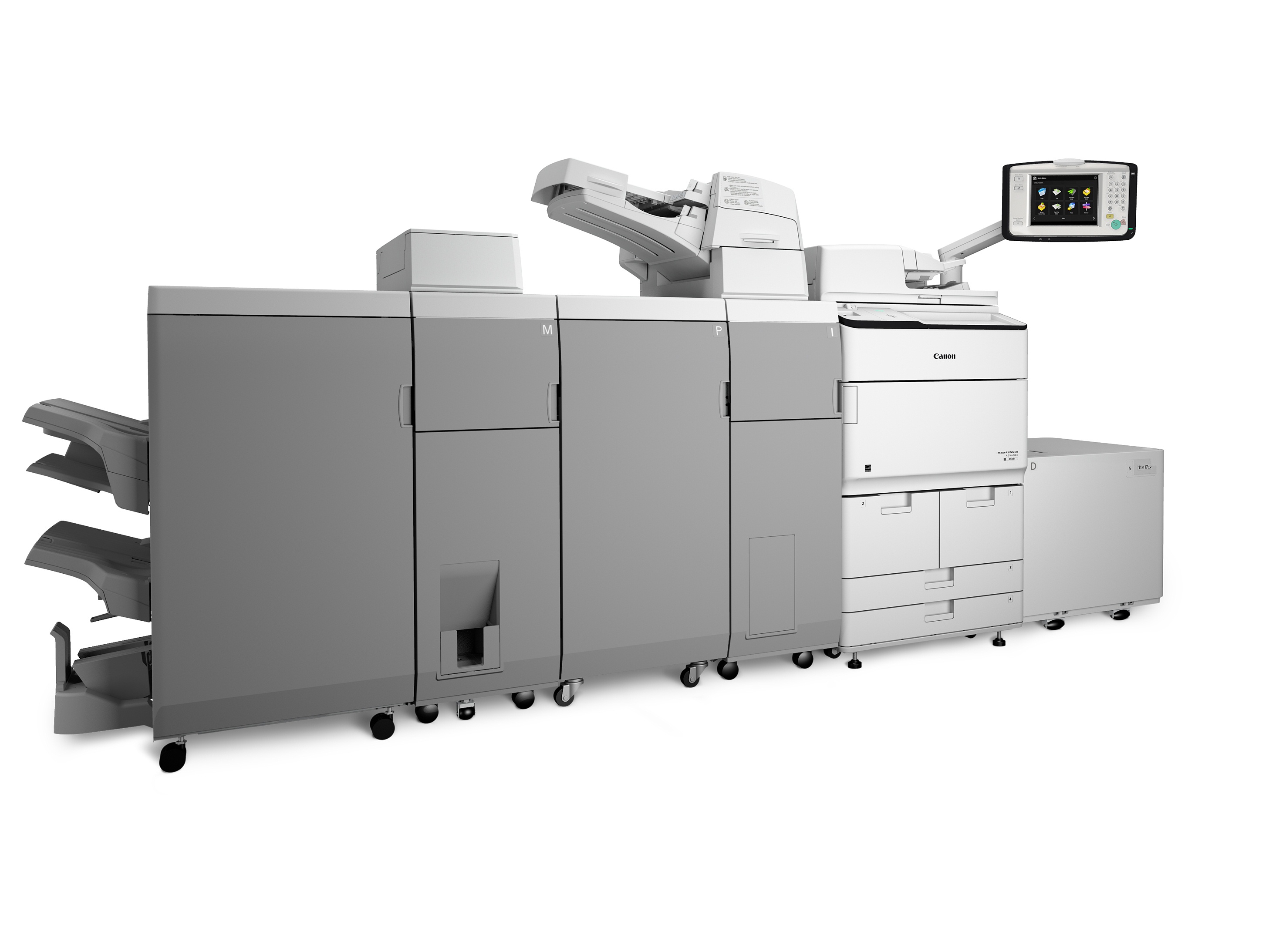 A very robust paper capacity on the Canon imageRUNNER ADVANCE 8595i will provide offices with enough paper to complete even the largest projects. The imageRUNNER ADVANCE 8595i starts with the standard paper capacity of 4,200 sheets from five paper sources. Increase the paper capacity up to 7,700 sheets with optional paper feed units. The imageRUNNER ADVANCE 8595i can be designed with several finishing capabilities so offices can finish a wide range of reports and files in-house.
