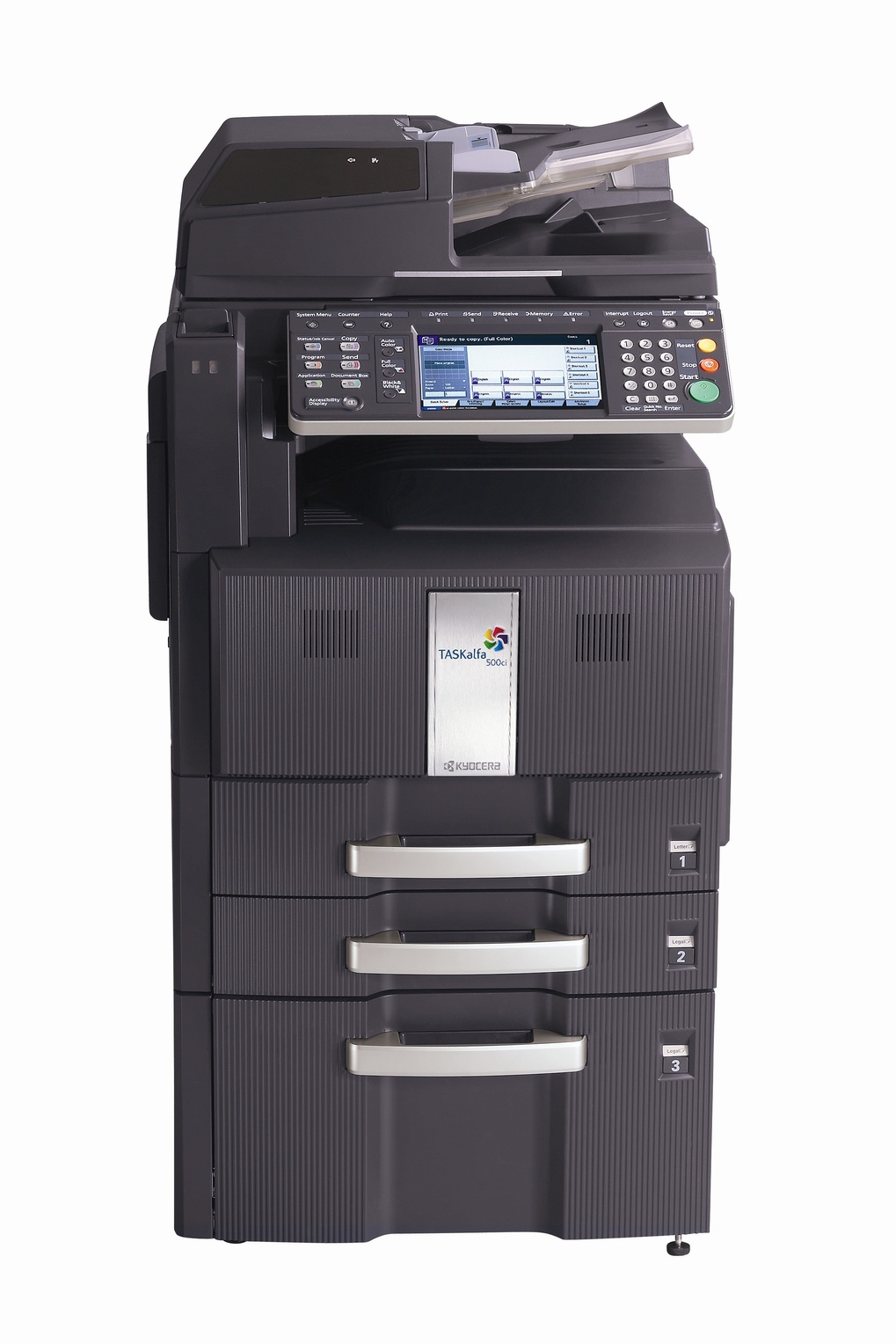 Paper sources stem from dual 500-sheet drawers and the 100-sheet bypass tray. The bypass tray on the Kyocera TASKalfa 400ci is exceptional for specialty papers such as labels or transparencies; it allows you to complete your project without having to unload the main paper tray. You can increase paper storage to reach the maximum of 4,100 pages when all paper tray options are utilized. Automatic duplexing comes standard on the TASKalfa 400ciāthis can decrease the amount of unnecessary paper consumption as well as condense hardcopy storage by converting single-sided input into double-sided output.